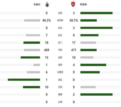第79分钟阿森纳本有机会进一步改写比分,但热苏斯的兜射被横梁拒绝,余下的时间,阿森纳开始掌控节奏,成功在客场零封布鲁日,取得了一场大捷。